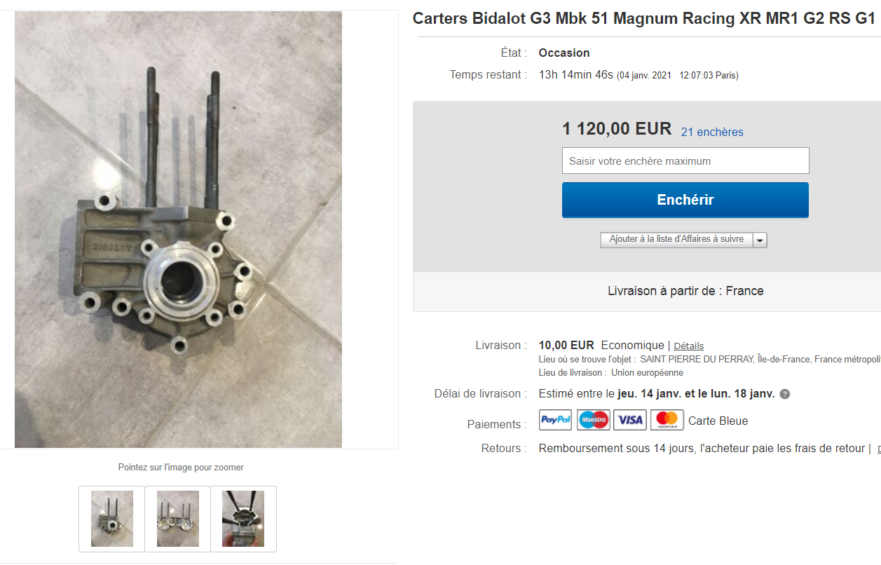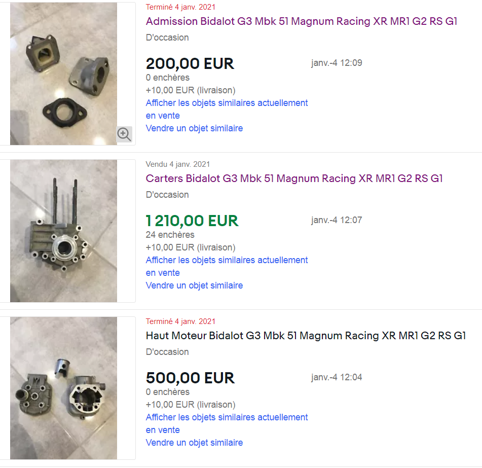 Les autres pièces Bidalot du même vendeur qui ont été vendues sont parties en gros au prix de mise à prix, dont un moteur complet à 1150.