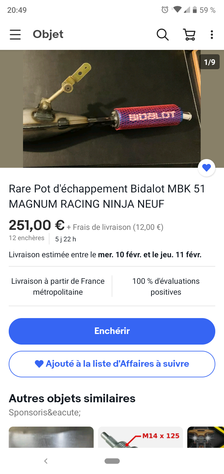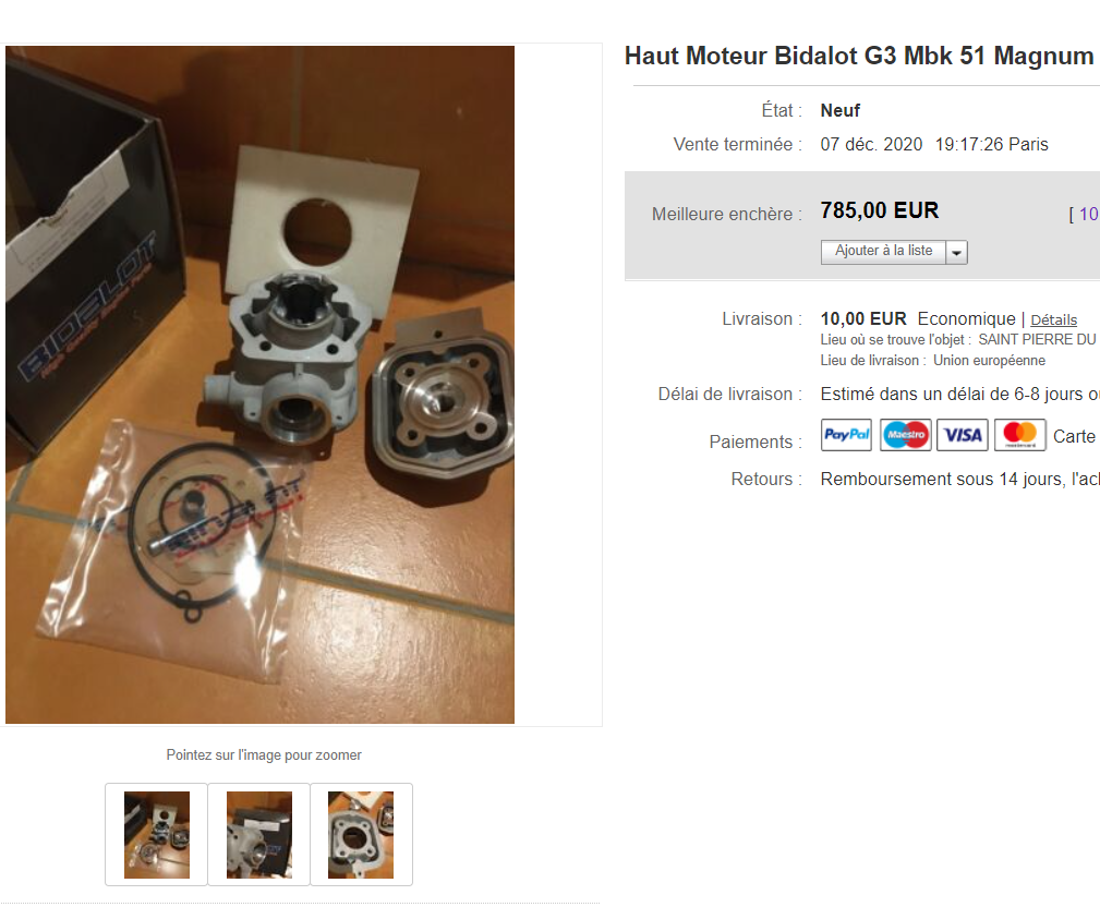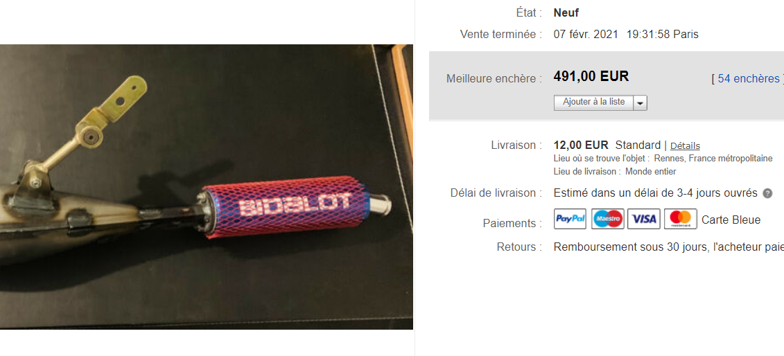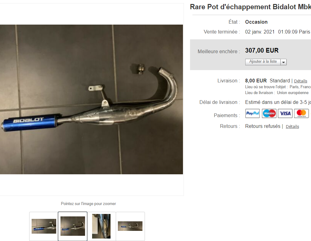 D'un autre vendeur, le pot bida racing est parti à plus de 300...