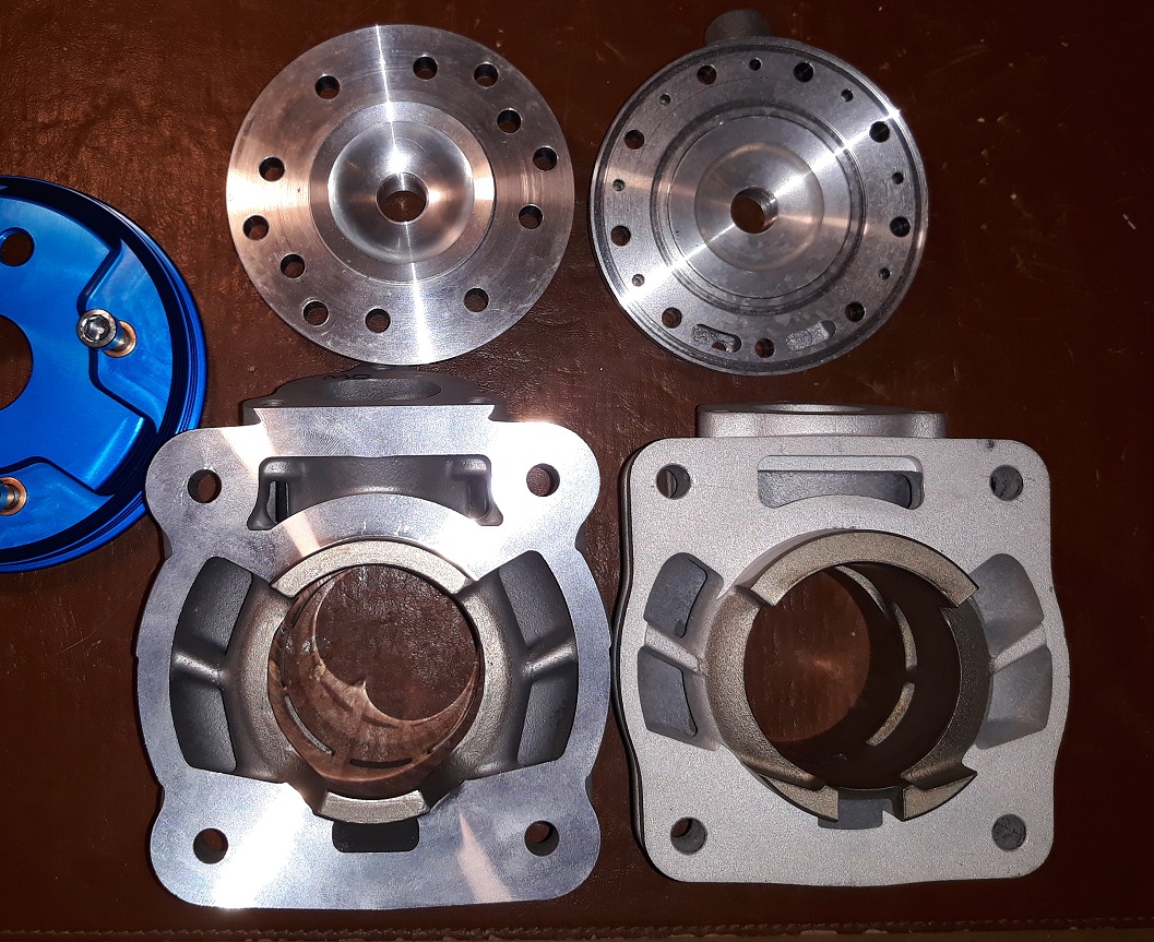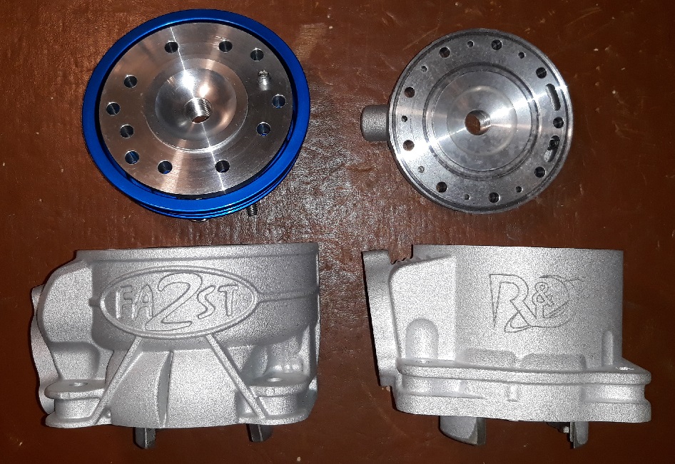 Les 2 hm sont prévus en course origine et bielle de 90, mais le cylindre 2fast est légèrement plus haut car le plot de la culasse rentre un peu plus. Forme hémisphérique dans les deux chambres mais dans le r&d c'est très abrupt après la bande de squish qui un peu plus large, et fond de la chambre quasi plat. Dans le fast la pente de la chambre est plus douce et régulière.