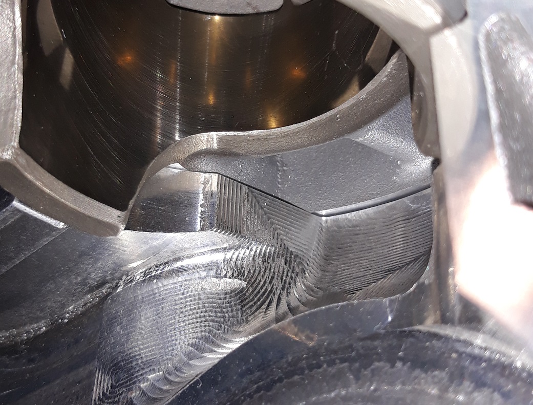 Le plus gros décalage se situe sur le transfert arrière. Ici la moitié du passage est obstruée, il faudra donc obligatoirement retravailler les carters r&d à cet endroit.