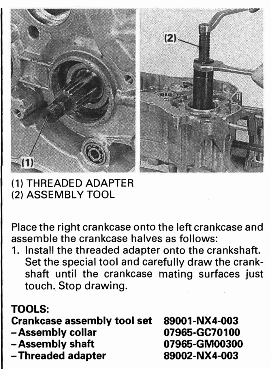 Pour tirer le vilo dans les roulements, j'utilise un tube de balançoire et une tige filetée avec un embout fileté en 10X100. Le tube doit appuyer sur la cage interne. Comme chez Honda et surtout pas a la sauce Yamaha ou l'outil s'appuie sur le carter :shock: