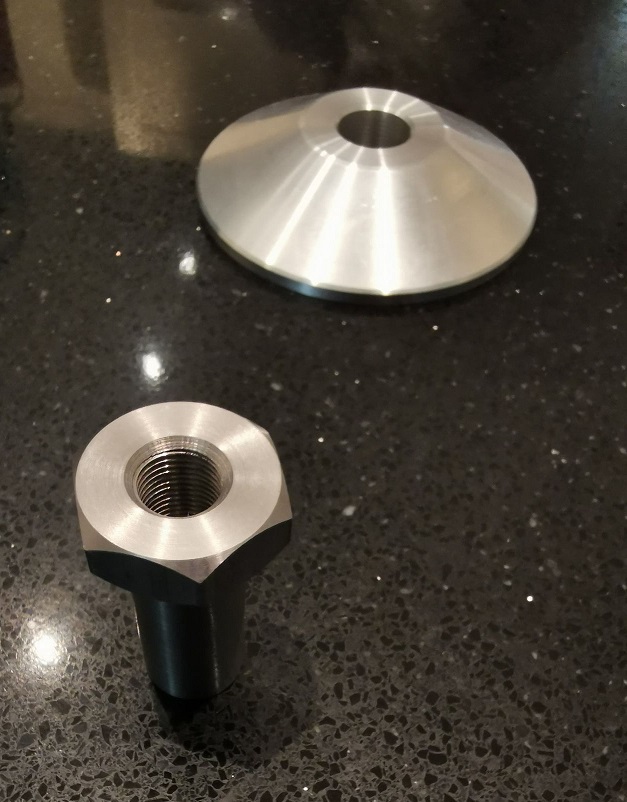 J'aurais préféré 1 seule pièce biseautée plutôt que 2 rondelles classiques mais je n'ai pas trouvé. Et 1 seule rondelle alu aurait été trop grosse, et 3 rondelles alu moins solides. J'aurais voulu qu'elle soit très légèrement creusée contre la cloche pour vraiment bien plaquer mais j'ai pas trouvé. J'aurais voulu une meilleure qualité d'alu mais j'ai pas trouvé. Et une forme originale cela aurait été vraiment le top mais là c'est complètement impossible à trouver... bref...