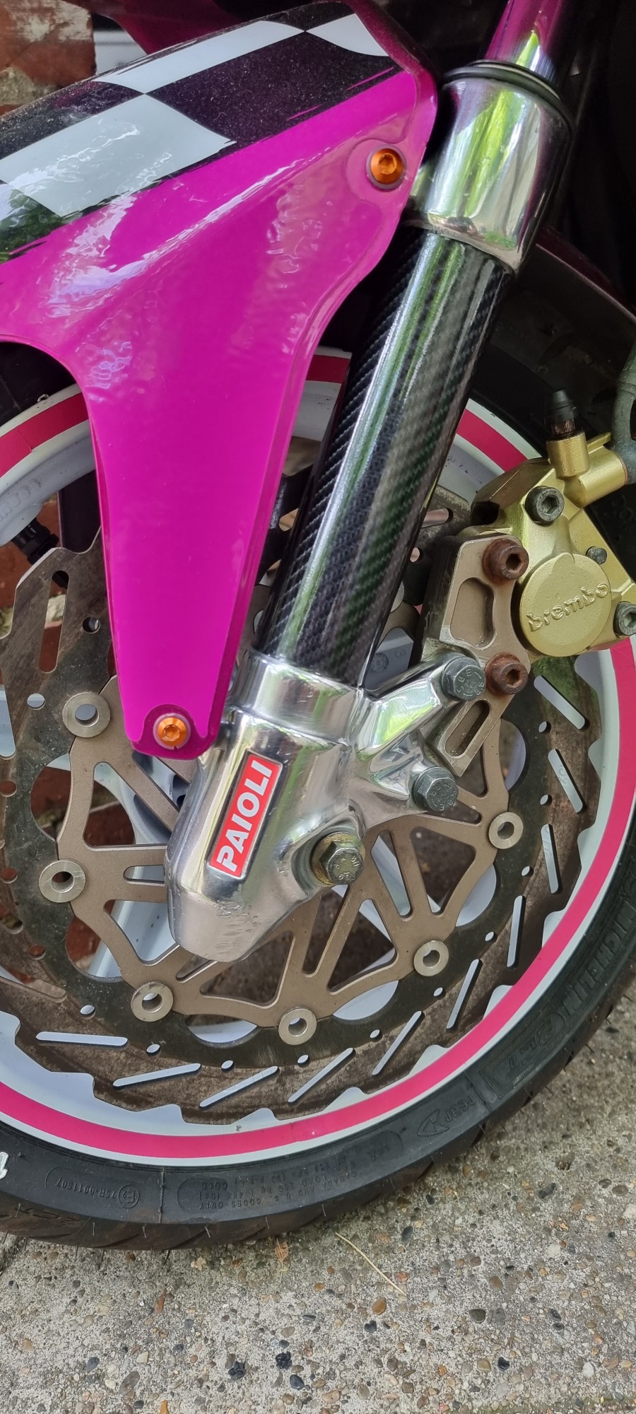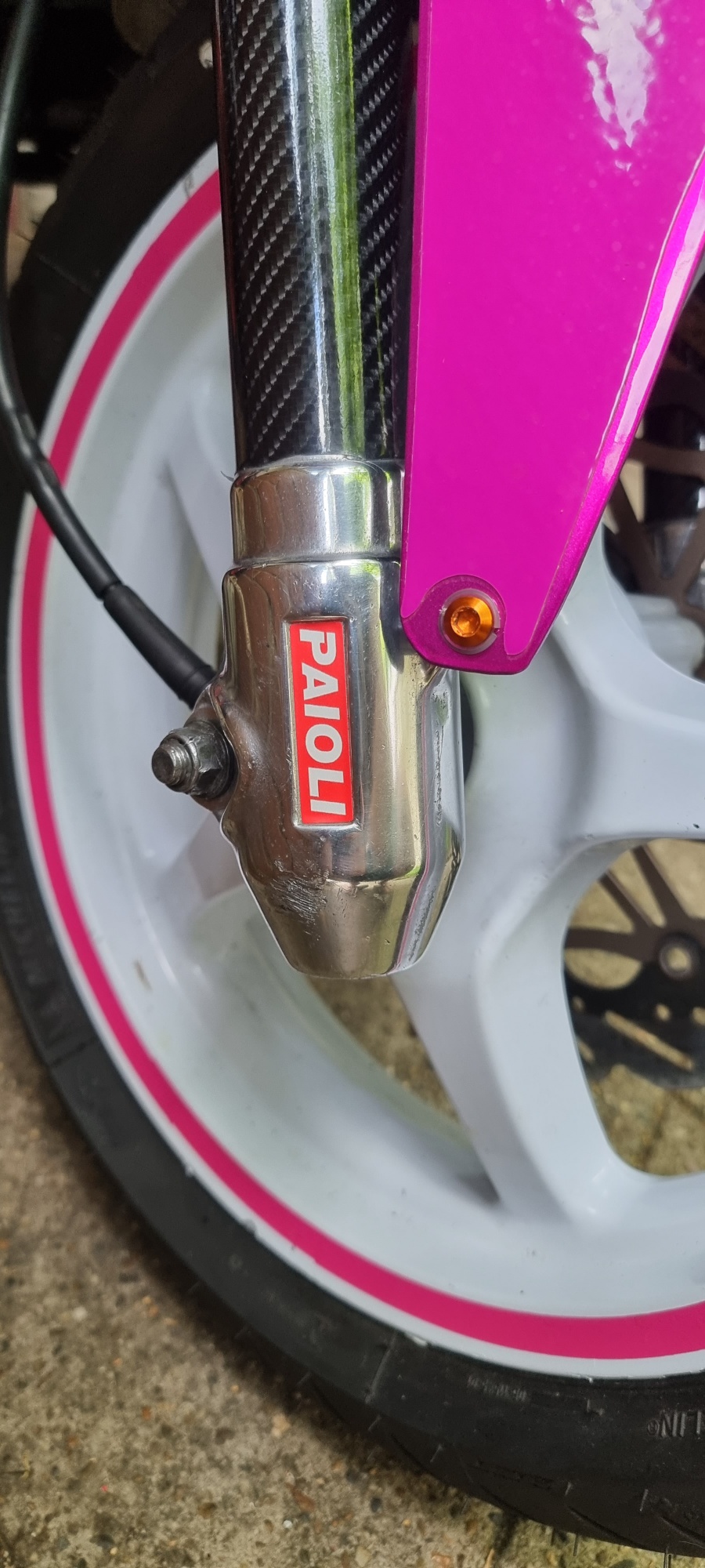 Montage de stickers paioli sur la fourche . Certes c'est pas les origines mais je suis tout de même satisfait du résultat C'est con comme détail mais je suis content du résultat