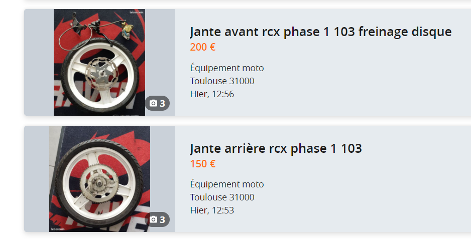 Là je me tâte pour cette belle paire de jantes mais j'ai d'autres priorités, notamment un radiateur hors de prix lui pour le coup mais y'a rien d'autre. Sauf à prendre de l'approximatif et pour une bécane principale je veux pas.
