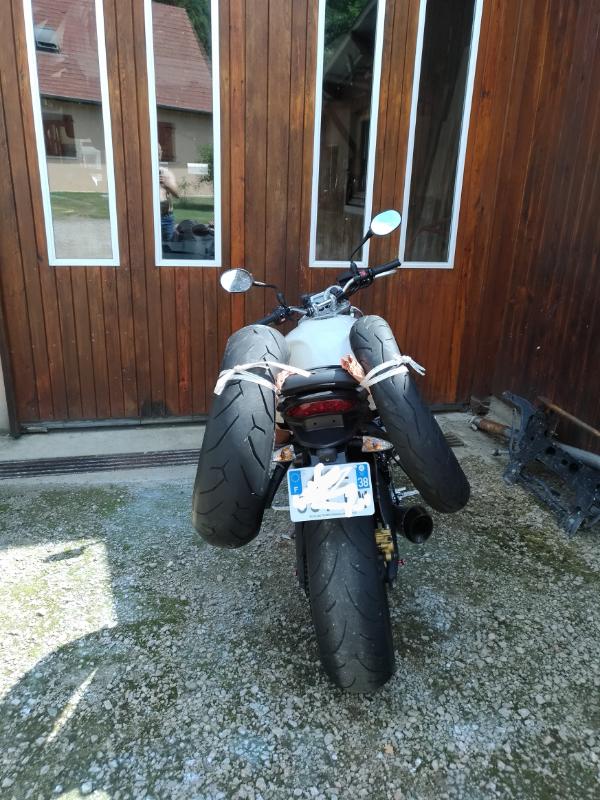 Pour ton échappement, met du carbone pas trop long genre ixil récent ou devil ça chauffe pas déjà ligne basse et fais toi des écarteurs de sacoches