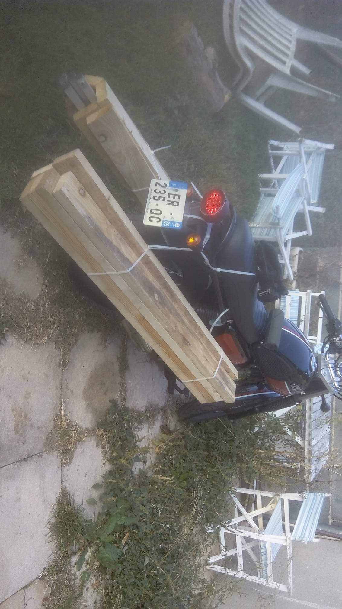 Le plus gros que j'ai fait ça devait être ça, j'avais pas de voiture à ce moment là. Coffre et top case déjà pleins, la colonne de douche sur les crashbars.