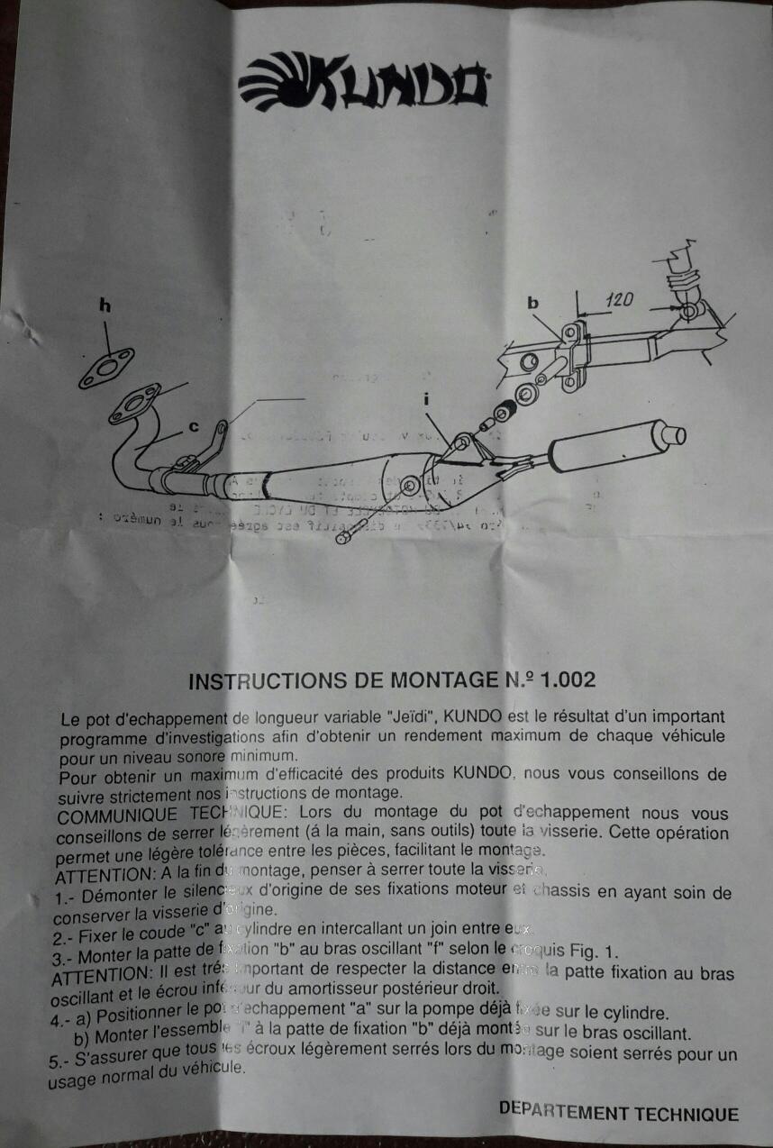 Je vous présende le pot d'échappement KUNDO "Jeïdi pour SPX/RCX, c'est un pot à "pompe" (longueur variable selon la notice...).