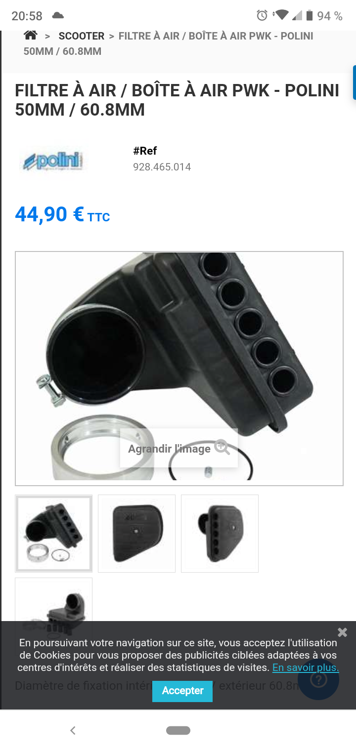 pas sûr du tout que ça respire correctement la boîté à air polini... logiquement il faut au moins une réserve d'1l (et ça c'est en promo, donc carbu 19)