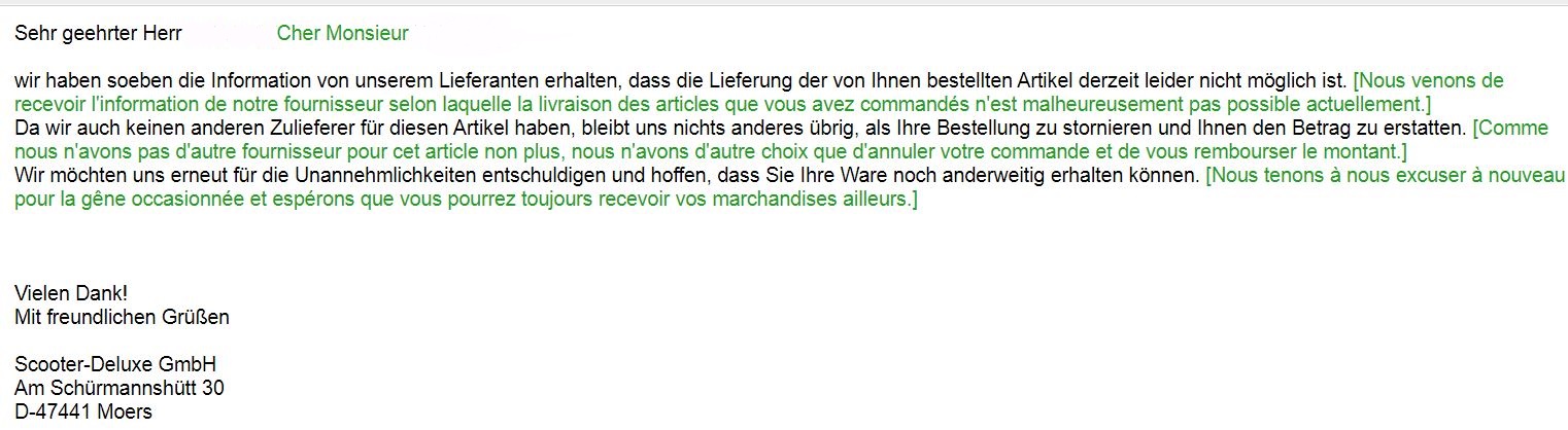 Concernant le disque vendu en Allemagne, j'ai reçu un nouveau message de la boutique.