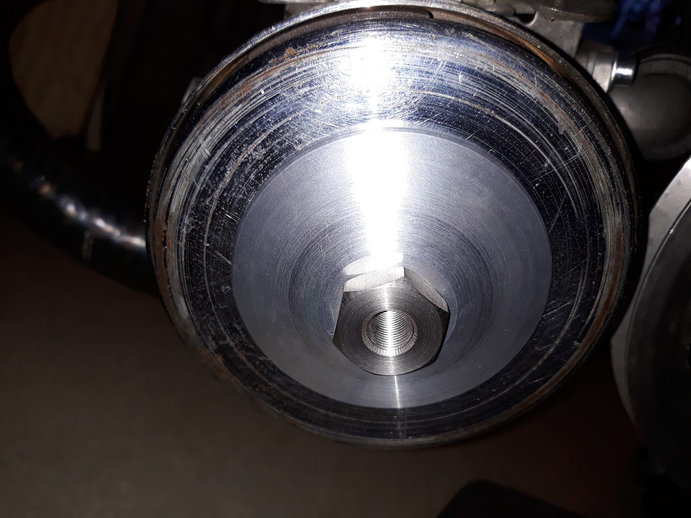 J'ai reçu la rondelle. Le diamètre central est grand mais il est plus petit que le diamètre intérieur de la cloche donc un écrou assez gros pourrait le centrer. C'est inox donc pas de rouille en principe, non ? Ceci dit, l'alu est assurément meilleur tu as bien raison, et c'est bien pour cela que chez Malossi ils avaient fait ce choix. Et puis j'ai testé, acier contre acier c'est vraiment pas génial...