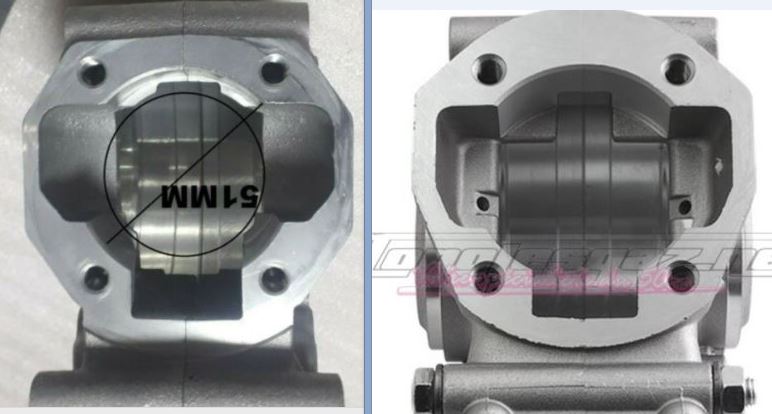 Au niveau de l'embase, les popo semblent disposer d'un peu plus matière pour pouvoir contenir les larges et très avancés transferts latéraux du cylindre Mvt. Mais il ne doit pas rester grand chose non plus... Peut-être demander à Julien (mir35), il a ce matos en stock et pourrait regarder, vérifier si ça passe.