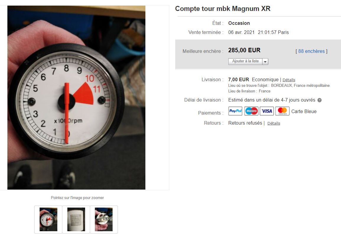 Méfiance Méfiance avec le compte tours....qui au delà de 7000 ...8000 tours commence à être optimiste..pour finir à 14000 pour un 12000 réel...je l ai mesurer...brefff....Méfiance donc car il y a eu arnaque sévère la dessus il y a 2 ou 3 ans.....et était à 90€