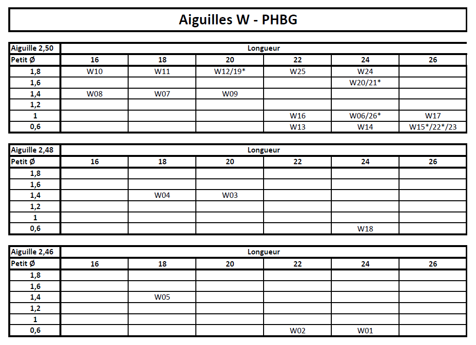 J'avais fait un tableau pour classer les différentes aiguilles, c'était bien plus sommaire !