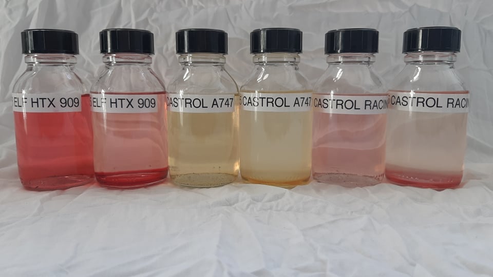 N'ayant pas encore fait d'autres tests de compatibilité d'huile, j'ai utilisé la ELF HTX 909 à 2,5%.