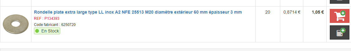 On trouve facilement des rondelles : Rondelle plate extra large type LL inox - M 20 ou M 18, diamètre de 45 à 60mm.