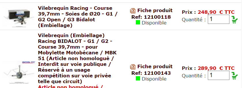 Jef toi qui connais bien les pièces de compet', ce vilo il est prévu pour quoi et c'est quoi sa dénomination car j'ai marqué g2 mais j'en suis pas certain
