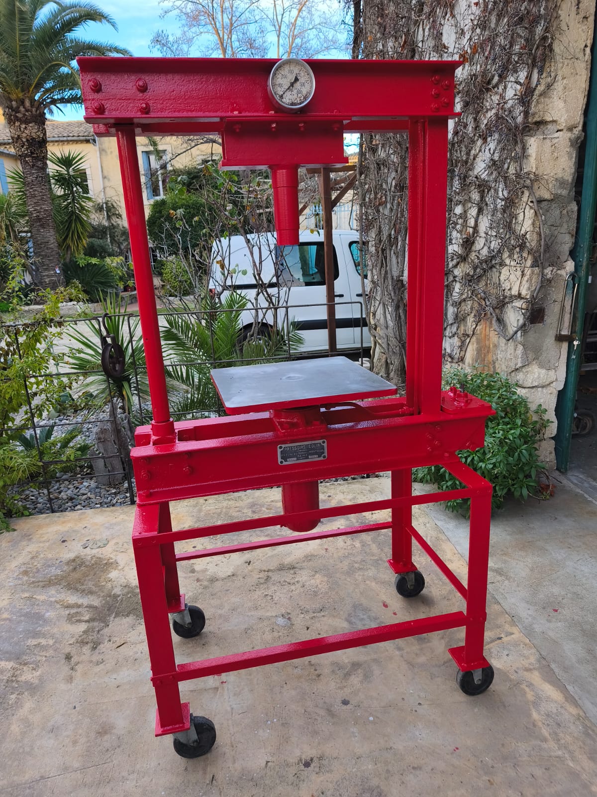 Ancien préssoirs à jus de fruits familial de 1945 transformé en presse d'atelier (pas encore fini).