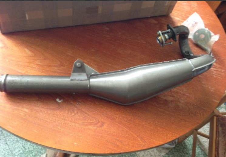 Un pot étrange en tous points, forme, volume, caractère. C'était un échappement extrêmement pointu sur 103 sans égaler les meilleurs de l'époque en puissance (rgd à corne). Il était au début équipé d'une très belle rotule à l'époque (mais très lourde), ce qui ne l'empêchait pas d'être sujet à des casses à répétition.