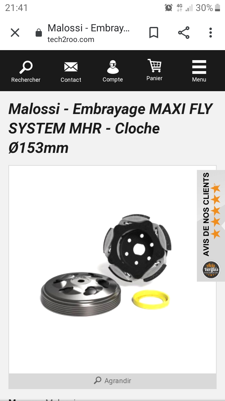 autre petite question, que diamètre de cloche d'embrayage vous me conseilleriez pour une poulie embrayage sur mesure, j'ai vu que malossi faisait des kits en diamètre 135mm pour les maxiscooters.....?