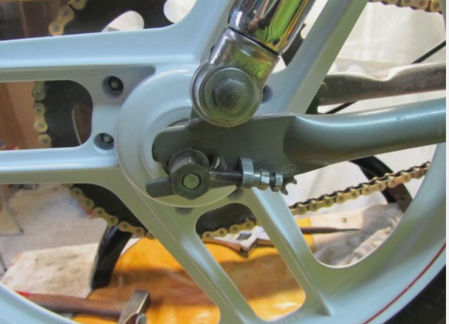 Sur les 51 à bras rond, il y a aussi des différences de hauteur dues au point d'ancrage sur le bras oscillant. Sur le photo du swing mauve, la fixation est tout près de l'axe de la roue. Sur les super et rock, elle est sur une patte un peu déportée.