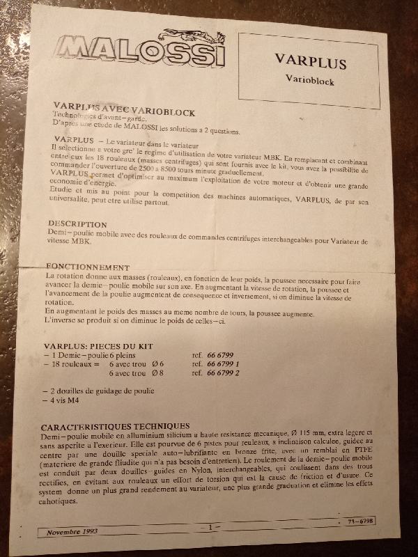 oui le varplus mais attention il faut la joue pare huile avec le petit épaulement d'1.5mm des mbk récentes, si tu prends un vieux vario avec le pare huile sans épaulement, les galets risquent de sortir vario en haut (ca m'était presque arrivé, il y en a un qui s'était coincé prêt à sortir)